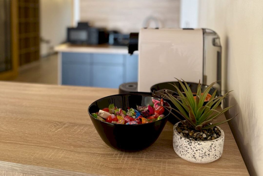 Na wejściu do lokalu znajduje się poczekalnia, w której klienci mogą poczekać na umówione spotkanie. Do dyspozycji jest także aneks kuchenny z ekspresem do kawy oraz innymi akcesoriami.