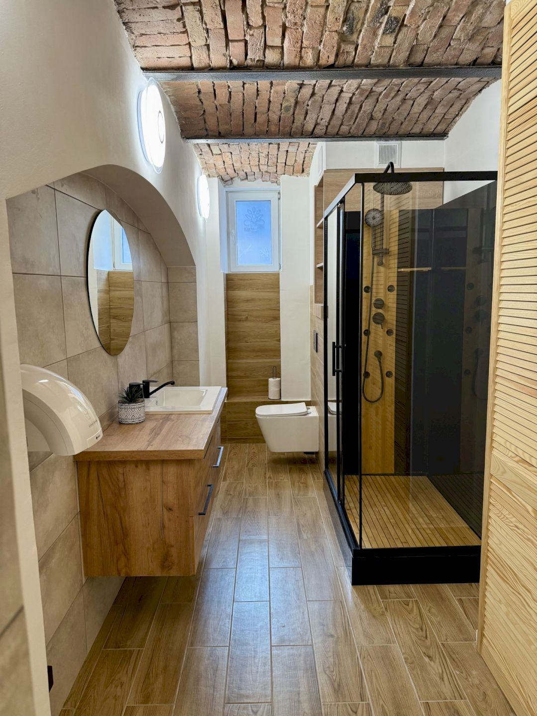 W pełni wyposażona łazienka, łącznie z kabiną prysznicową pozwoli na komfortowe przygotowanie się do spotkań lub odświeżenie w przerwie pomiędzy nimi.