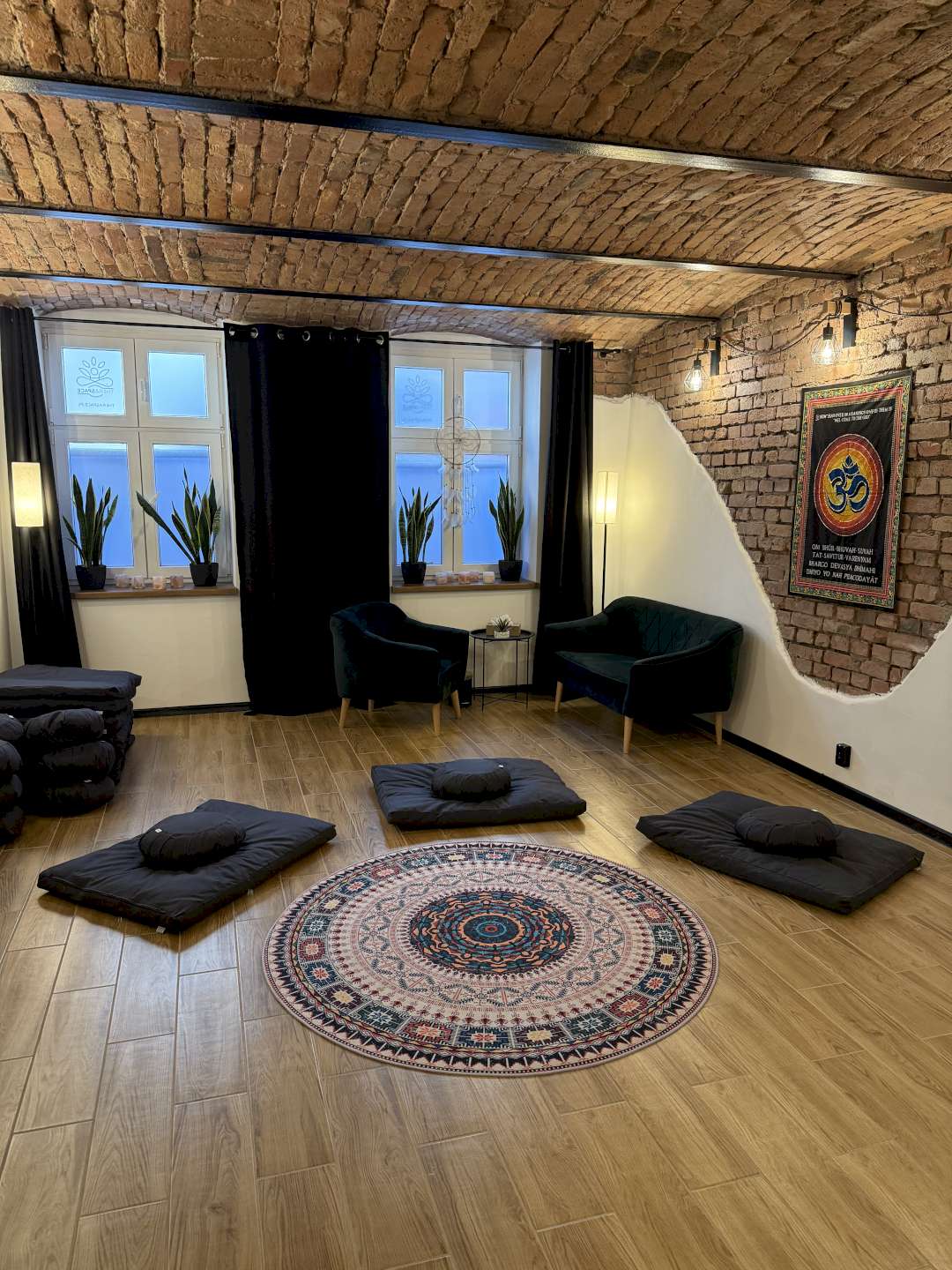 Wnętrze łączy funkcjonalność z przyjazną, sprzyjającą wyciszeniu atmosferą. Oprócz wygodnego zestawu wypoczynkowego, gabinet wyposażony jest w komplet mat oraz poduszek do medytacji, co umożliwia prowadzenie zajęć takich jak medytacja, treningi uważności, warsztaty rozwojowe czy praca z ciałem w grupie.